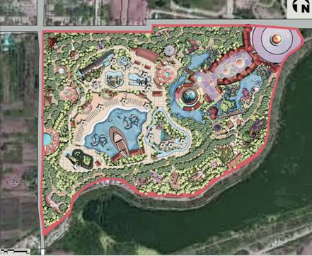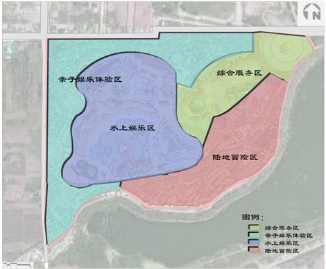 2.3功能分區(qū):根據(jù)項目地的場地情況、開發(fā)現(xiàn)狀、發(fā)展思路等,確定功能分區(qū)為:綜合服務(wù)區(qū)——仙聚蓬萊、親子娛樂體驗區(qū)——八寶樂園、水上娛樂區(qū)——八仙戲水、陸地冒險區(qū)——龍宮歷險。