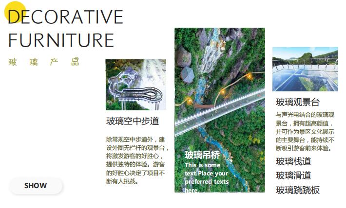 我司提供旅游景區(qū)游樂(lè)設(shè)備有:觀光索道、玻璃產(chǎn)品、趣味產(chǎn)品和低空旅游設(shè)備等。