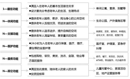養(yǎng)老地產是養(yǎng)老產業(yè)的重要組成部分,養(yǎng)老地產則是以衣食住行為基礎,兼容休閑產業(yè)、旅游產業(yè)、文化產業(yè)及健康產業(yè),通過養(yǎng)生的理念和方法,在房地產開發(fā)運營下形成獨特的養(yǎng)生養(yǎng)老地產模式。具體包括適宜老年人居住的如老年住宅、老年公寓、養(yǎng)老公寓等項目的開發(fā)和經(jīng)營的過程。