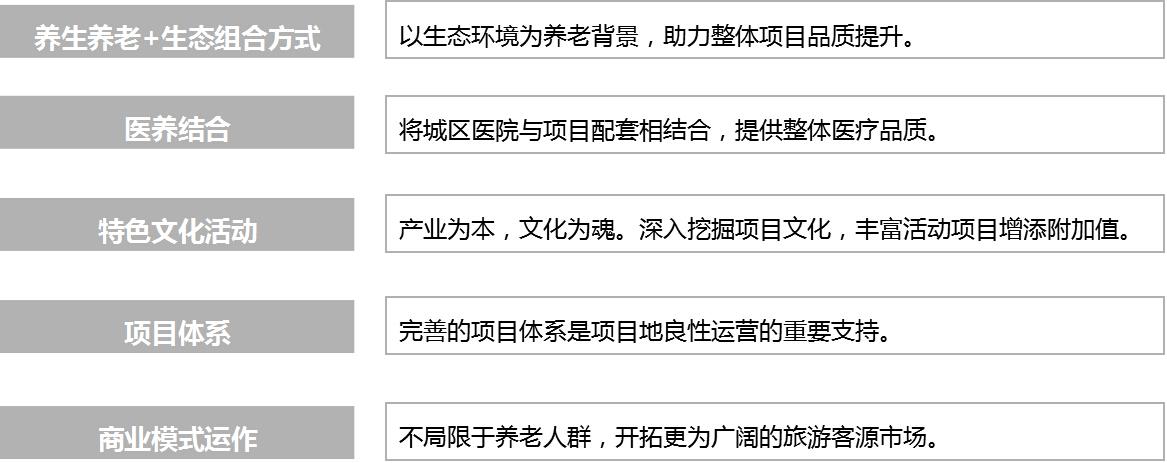 養(yǎng)生養(yǎng)老項目成功開發(fā)的關鍵因素主要包括五個方面: