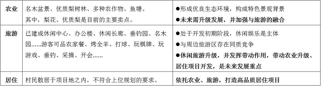 “農業(yè)”、“旅游”發(fā)展已具備一定基礎。但有待提升,并帶動“居住”發(fā)展。