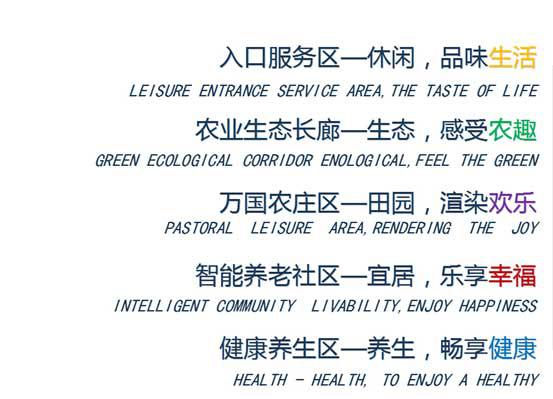 打造理想化、品質化、綜合化的能夠盡享田園生活、暢享養(yǎng)老生活、認知農業(yè)創(chuàng)意、體驗休閑樂趣、品味多元文化、快樂養(yǎng)生養(yǎng)心……的