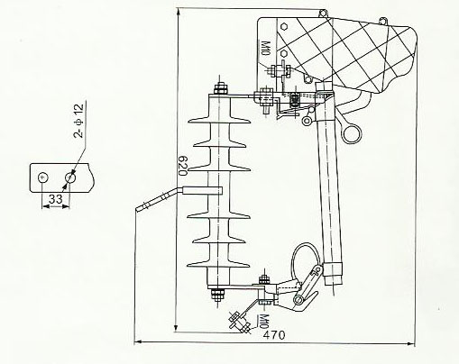該系列為跌落式熔斷器,跌落式熔斷器及拉負荷跌落式熔斷器是戶外高壓保護電器.它裝置在配電變壓器高壓側(cè)或配電線支干線上,用作變壓器和線路的短路,過載保護及分,合電流.額定電壓為15KV,額定電流為100A/200A,外形尺寸為40×34.5×11
