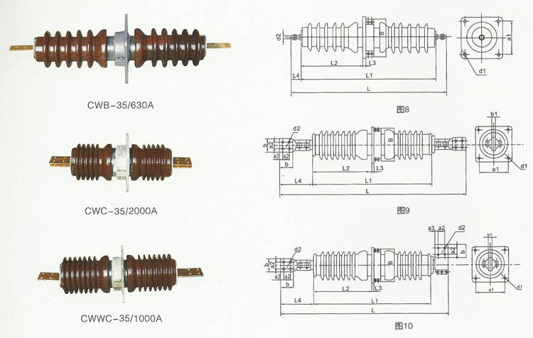 CWB-35KV/(400-2000)A圓銅棒高壓穿墻套管